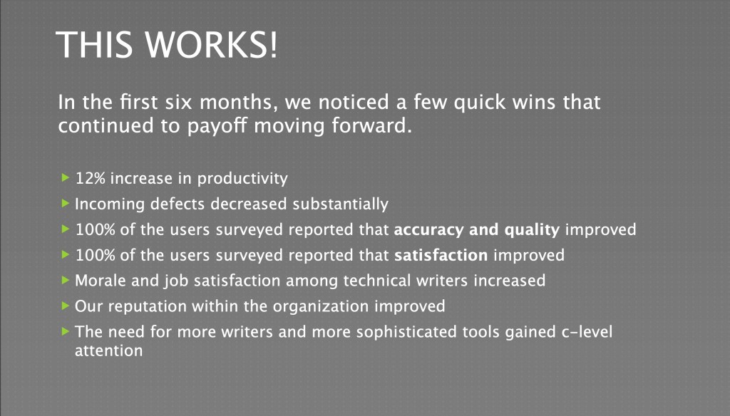 In this presentation, for the Northeast Ohio Society for Technical Communication (now Ohio Society for Technical Communication), Steve Jackson and I explained how agile can be applied to technical writing to result in faster delivery of value, greater customer satisfaction, and improved employee engagement.