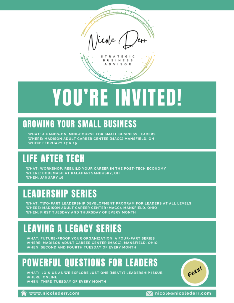 https://nicolederr.com/2025/12/30/join-me-for-life-after-tech-at-codemash-on-january-16th/ - Leadership Series: